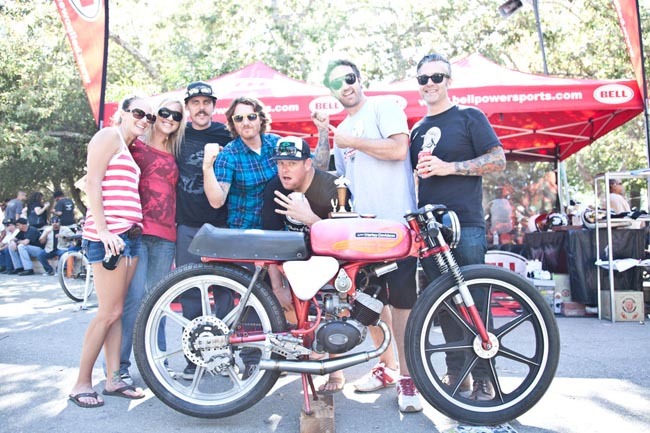 Resulta que hace unos meses, mientras buscaban recambios para la Harley Davidson Sposter que le estaban fabricando a Travis Pastrana se tropezaron con este pequeño ciclomotor en un garaje debajo de una pila de trastos. Tras pagar por ella 700 dólares se la llevaron al taller, dónde estuvo dando vueltas durante cinco meses en los que nadie acababa de imaginar lo que querían hacer con ella. Su momento llegó una semana antes de asistir al Born Free, una concentración Custom de los USA. Mientras pensaban en hacer un Scooter Custom, se tropezaron con la Harley y se pusieron manos a la obra casi en el mismo instante.