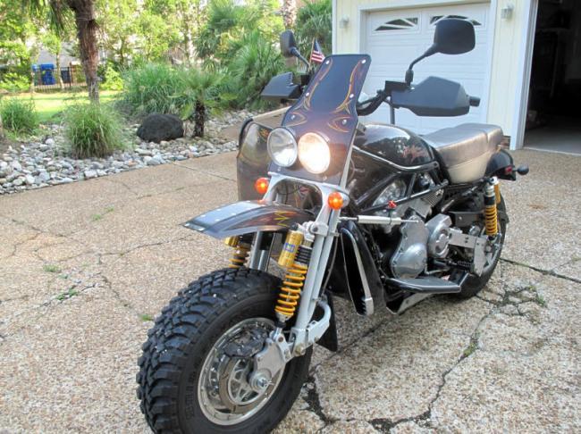 No entiendo qué oscuros motivos pueden llevar a alguien a decidir que con la base de una custom te puede salir un vehículo todo terreno que se parece a Frankenstein, y que te resulte una idea atractiva. También hay muchos detractores de las motos de Milwaukee con el motor Revolution, pero de ahí a cometer esta atrocidad hay un trecho bastante grande. Sea como sea el engendro vive, y según el creador lleva recorridas en este estado más de 2.000 millas.