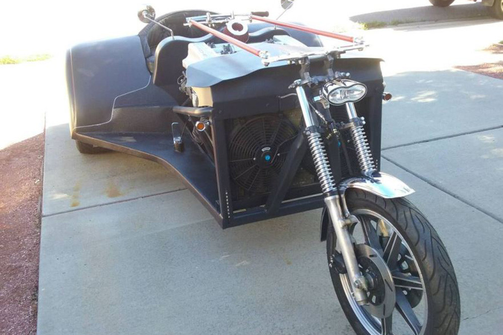 Y también resulta muy intrigante saber qué tenía en mente el creador de este artilugio a la hora de elegir el motor que lo movería. No sabemos exactamente lo que pasó por su cabeza, pero sí sabemos que este trike propulsado con el motor de un Porsche 928 del año 1986 es uno de las criaturas más extrañas que pueden verse en una carretera.