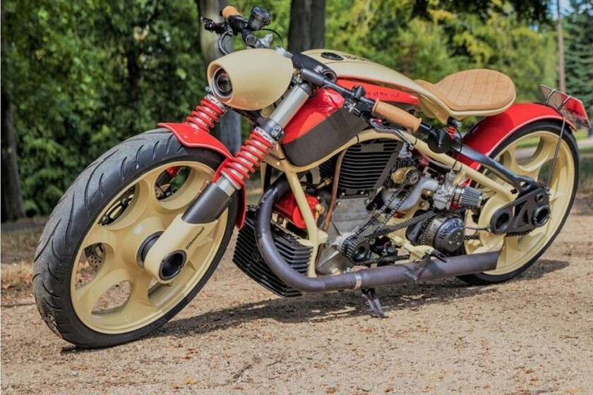 Manteniendo el ADN ha llegado ya la Böhmerland 21, una moto tan exclusiva como extravagante y cara. Es una custom cruiser que deja su mecánica al desnudo, y aunque no tendrá una distancia entre ejes tan grande, pero sí unas enormes ruedas de 21 pulgadas con neumáticos de 120 y 130 delante y detrás. respectivamente.