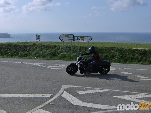Pero como no todo en esta vida es acelerar, y el norte de España no destaca precisamente por sus rectas, hay que detenerla para afrontar la curva. Dice un buen amigo mío, que al colegio y a las curvas hay que ir con los deberes hechos, y la Night Rod te lo exige más que ninguna. Aprovechamos el freno motor para adecuar la marcha a la curva, ayudados por el embrague anti-rebote que monta de serie y evita que nos tengamos que preocupar de modular el embrague. Tocamos el freno trasero y empezamos a disminuir la velocidad. El delantero, como acompañamiento, funciona correctamente incluso aplicando un solo dedo a la maneta. Y además, como lleva ABS no tendremos problemas en condiciones de firme deslizante.