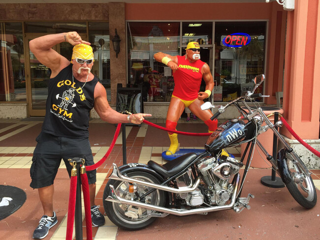 En entrevistas, reportajes y apariciones, Hogan usaba las motos como extensión de sí mismo. Era habitual verle llegar a espectáculos subido en una Harley hecha a su medida, o posar con máquinas que llevaban sus lemas más repetidos: "Entrena, reza, toma tus vitaminas".