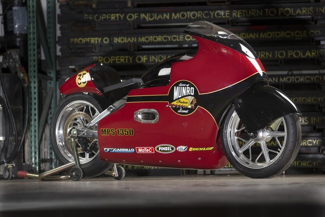 La meta de Munro y del departamento de ingeniería de Indian es superar los 321 km/h, para lo que la Indian Scout 'Spirit of Munro' ha sido mejorada. En esta ocasión se utilizará un motor de 1.350 cc afinado con una admisión completamente nueva y algunos ajustes en la carrocería para mejorar la aerodinámica.