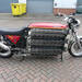 El piloto casi no llega a agarrar el manillar desde el asiento. Su voluminoso aspecto se debe a seis filas de ocho cilindros S1 extraídos de los 16 motores de dos tiempos de las Kawasaki KH-250. La transmisión es de una BMW K100.