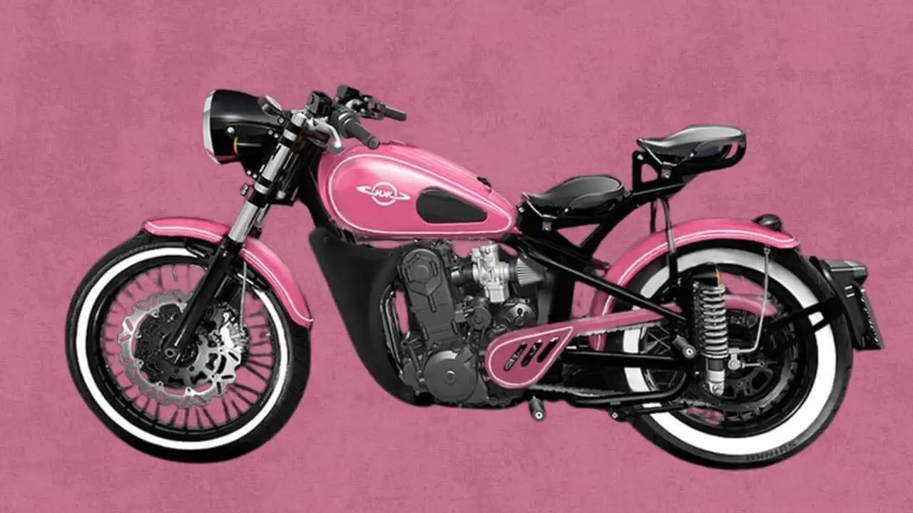 Ya es toda una declaración de intenciones sacar una moto para el Día de la Mujer, presentándola una mujer, y solo para mujeres. Es de color rosa al completo. Se llama IZH-49, y la han vendido como una moto "femenina".