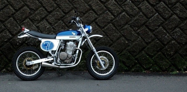 En esta ocasión el encargo del cliente era que quería una moto que le recordase la Honda SL90 con la que se inició en el mundillo de las motos. El problema era que el cliente parece que es un tipo bastante grande, así que el motor no podía seguir siendo un 90 cc. La cilindrada elegida en este caso fue los 600 cc, con un motor procedente de una Honda XR600 con un carburador FCR.