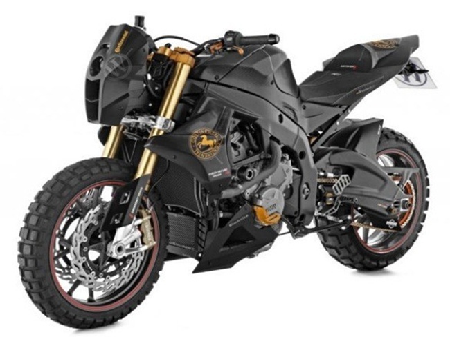 Así, han desnudado a la BMW S1000RR quitándole su carenado original y esos faros tan reconocibles, poniéndoles una cara muy parecida al kit Piranha con el que ya cuenta Wunderlich. Pero por encima de todo, saltan a la vista esos neumáticos de enduro Continental TKC80 (120/70 el delantero y 180/55 el trasero) que cambian directamente la filosofía de la moto. También cuenta con suspensiones Öhlins, manillares Magura o un tubo de escape de aluminio Ramus.