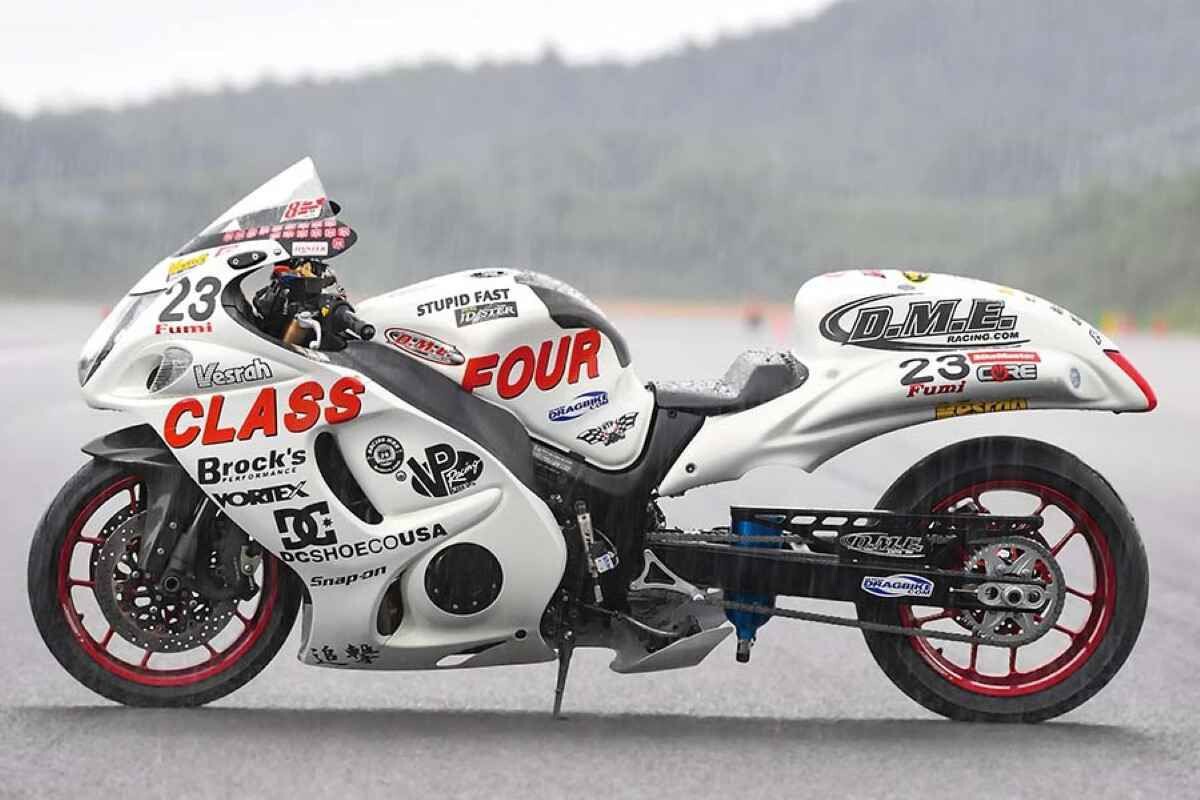 El motor de la Hayabusa de segunda generación cubicaba 1.340 cc de serie. Estos japoneses lo subieron hasta los 1.441 cc mediante diversas modificaciones como pistones forjados, bielas, embrague reforzado, y hasta nitro.