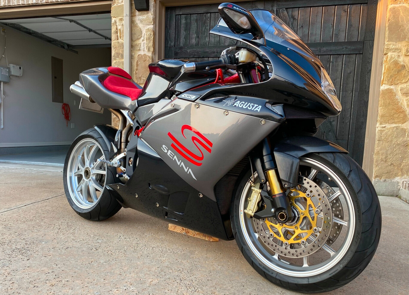 Fue con esa pretensión de recaudar fondos cuando MV Agusta y la fundación Senna se unieron para crear esta maravillosa MV Agusta F4 1000 Senna de la que sólo se hicieron 300 unidades en todo el mundo. Una preciosa moto que cuenta con un motor tetracilíndrico de 998 cc y 172 CV capaz de superar los 300 km/h sin despeinarse. Pues bien, hoy ha salido a subasta una de ellas en unas condiciones impolutas y con un kilometraje realmente bajo, 3000 millas (5.000 km más o menos). Pero lo más increíble de todo es su precio de salida, que para ser el modelo que es sólo piden 13.000 dólares de salida...