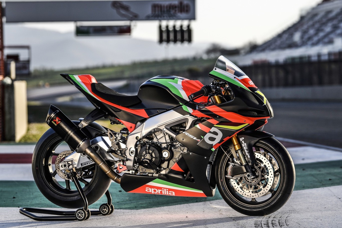 Como accesorio se ha instalado una línea completa Akrapovic de titanio con salida de fibra de carbono, filtro de aire de alto caudal, centralita específica y caja de cambios con el punto muerto por debajo de la primera marcha. El resultado es una bestia que se va hasta los 225 CV, 8 CV más que en la RSV4 1100 Factory.