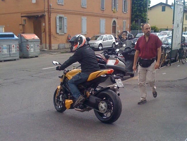 Según Ducati news today, el basculante utiliza un anclaje del buje trasero de cinco tornillos cómo en la Ducati 848 y delante vemos unas pinzas Brembo "baratas" y la horquilla parece la misma Marzocchi invertida que utiliza la Ducati Monster 1100 EVO. Ahora parece que solo nos queda por conocer las cifras de potencia y par que ofrecerá la pequeña Streetfighter, ya que imagino que no utilzarán el motor de la Ducati 848 con todos los 140 CV que actualmente da. Lo que si parece que se confirma es que se va a utilizar la tecnología que permite hacer revisiones cada mucho tiempo con lo que estaríamos frente a una Ducati algo más barata de mantener. Pensando todo el tiempo que queda hasta el Salón EICMA de Milán 2011, la de novedades que tiene en el tintero Ducati y lo aficionados que son a las filtraciones, estoy seguro que se avecina un otoño muy interesante.