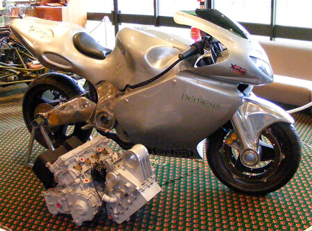 Presentada en 1999, la Nemesis fue un prototipo descomunal, equipado con un motor V8 de 1.479 cc y 235 CV, capaz (según sus creadores, no según nosotros) de superar los 260 CV con la configuración adecuada. Era la joya de una Norton controlada por capital americano, aún lejos del turbulento reinado de Stuart Garner, que llegaría en 2003.