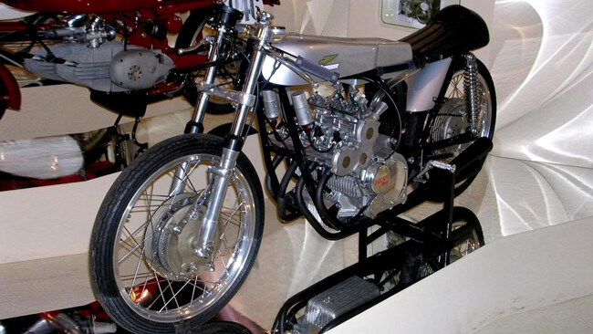 Esa tecnología llegó a las motos de carreras de 125 cc. Las motos empezaron a incluir el famoso accionamiento de válvulas “Desmodrómico” de Taglioni. Y hasta hoy. Taglioni se vio obligado a copiar a los japoneses, que empezaron a asomar la cabeza con los motores multicilíndricos. Así que esta fue la primera moto de cuatro cilindros y 125 cc de los italianos.