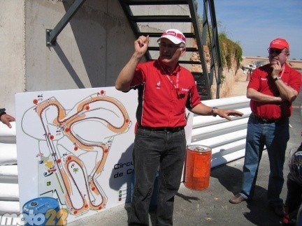 La charla de Joaquín estaba encaminada a bajarnos las ínfulas competitivas de los que allí estábamos, junto con una somera explicación del circuito, sobre todo haciendo hincapié en las curvas más comprometidas y algunas peculiaridades de estas. Lo que no me imaginaba yo es que un poco mas tarde me iba a ver en una de esas curvas sin saber que hacer. De ahí a las motos, a ver quien extraía mejores conclusiones y sensaciones de las disponibles. Deciros que solo nos dejaban dar tres vueltas al circuito, la primera para hacernos con los mandos de la moto, la segunda para recabar sensaciones y la última para extraer conclusiones. Siempre siguiendo a un piloto experimentado en el circuito, con la máxima de no adelantarnos ni agobiarnos e intentar tomárnoslo con calma.