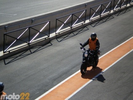 A los que nunca habéis rodado en circuito, como yo hasta esa mañana, solo puedo comentaros que por mucha habilidad que tengas a la hora de circular en carretera abierta, en el circuito no te vale de nada. No hay líneas en el asfalto, salvo los pianos y las líneas que delimitan el final del asfalto, con lo que las referencias son casi inexistentes. Tampoco te vale el instinto de apartarte de cualquier mancha sospechosa, porque las marcas negras que hay son de goma y te indican donde ha frenado la gente antes que tú. Encima a los lados no hay nada, con lo que la velocidad es la que marca el cuentakilómetros, si tienes tiempo de echar un vistazo, porque el cerebro tiene que ir a muchísima velocidad para procesar todos los datos que recibe. Los que ya habéis rodado en circuito no creo que tenga nada que descubriros, porque la sensación no tiene nada que ver con rodar en ningún otro sitio.