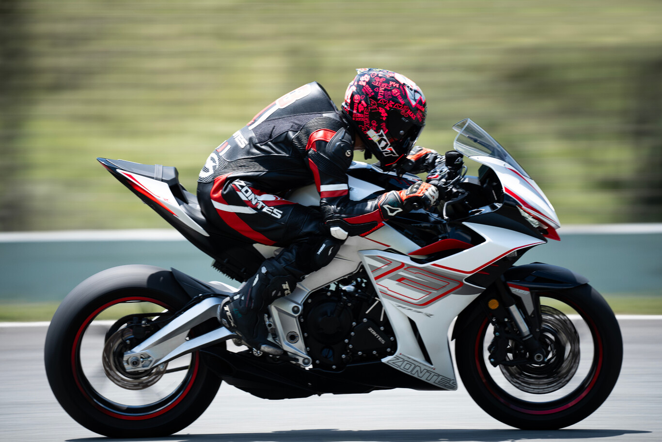Primer vistazo y la nueva deportiva china (que llega a España en verano) ya infunde agresividad. Zontes nos presenta una moto con líneas afiladas y un buen equilibrio general. Por venir, llega hasta con deflectores integrados en el carenado.