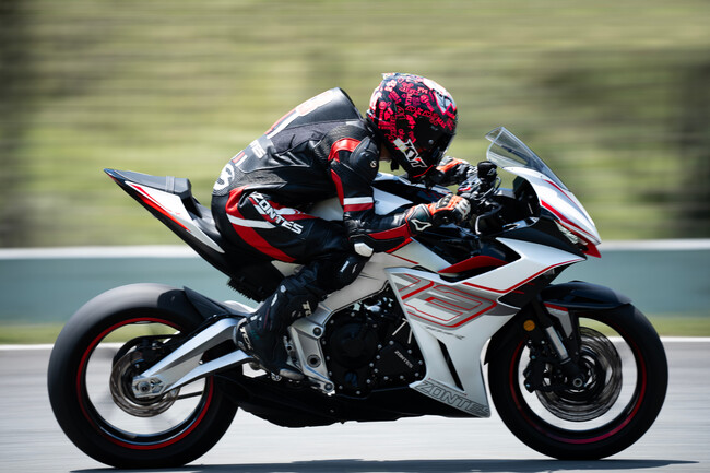 La magia viene en el motor. Es de 700 centímetros cúbicos, un tricilíndrico dispuesto a 120º con potencia de 95 CV a 11.200 vueltas y un par motor de 74,5 Nm a 8.500 rpm. Asimismo, tiene cambio semiautomático Quickshifter de serie.
