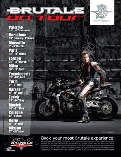 MV Agusta organiza un Tour a nivel europeo, para su modelo más popular, la Brutale. El tour recorrerá ciudades como Marsella, Paris, Londres o Zurich entre otros, pero también pasará por España, más concretamente por Barcelona.