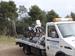 Después de alguna situación kazkiana kafkiana para explicarle por teléfono mi ubicación a la operadora de la aseguradora (Por ejemplo, la urbanización Pedrasanta se transforma en Tierra Santa y el pueblo de Sentmenat se convierte en San Minar...), quedamos en que me envía una grúa. Llega en una hora, pero no conseguimos arrancar tampoco la moto entre los dos, así que no hay más remedio que cargarla. ¡Qué triste es la estampa de ver mi moto encima de la plataforma!. Me envían un taxi que me deja en casa antes de comer.