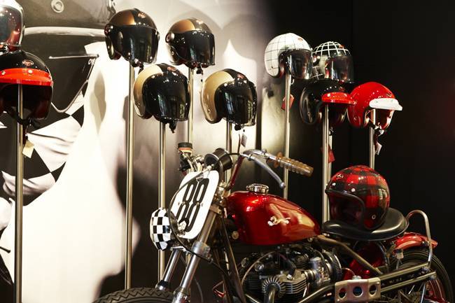 Desde el pasado 9 de mayo y hasta el 17 de julio, la tradicional tienda barcelonesa Santa Eulalia, fundada en 1843 en el Plà de la Boqueria dispone en su entrada de una colección de los Ateliers Ruby que además pueden ser adquiridos por los visitantes si así lo desean. Junto a los parisinos cascos también se podrá admirar una motocicleta muy especial de estilo Flat Tracker animada por un motor de 650cc.