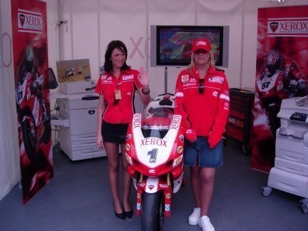 Con lluvia intermitente, y nubes casi a la altura del mar salimos a las 8 de la mañana para Xeste, el Circuit Ricardo Tormo, con unos pases que nos consiguió Jose Manuel "El Mizter" pases de paddock y pit walk incluido. Por suerte, o por desgracia, el atasco para entrar a Xeste con las Superbikes no tiene nada que ver con el de GP, y así recorrimos en 10 minutos lo que en el GP me costó cerca de 45. Tras colgarnos el pase en el cuello, nos metimos en faena, paseito por el paddock, fotos a las pit babes, y corriendo a la grada a ver la primera carrera de Superstock 1000.