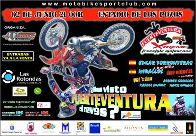 Será este 2 de junio en el campo de fútbol Los Pozos, en Puerto del Rosario, Fuerteventura. El primer Fuerteventura Motocross Extreme Festival, festival de motocross extremo llega a la isla este año con un buen cartel, y parecen dispuestos a calar hondo. El freestyle tiene cada vez más presencia y desde luego, los espectáculos merecen la pena.