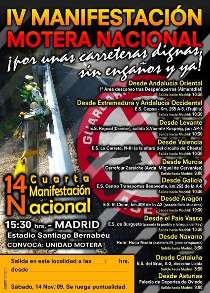 Se ha convocado la IV manifestación nacional motera en Madrid para el próximo 14 de noviembre a las 15.30 horas en el Estadio Santiago Bernabeu. Comienza a ser una tradición, y es que se trata del cuarto año consecutivo en el que se convoca esta manifestación. Cuatro años demandando respeto a la moto, que es algo que no está teniendo este Gobierno. Al menos, este año se celebrará bajo el influjo positivo de la rebaja del impuesto de matriculación y de la arrancada real (¡por fin!) del Plan Moto-e. Pero con temas tristemente pendientes en la agenda como los guardarraíles asesinos.