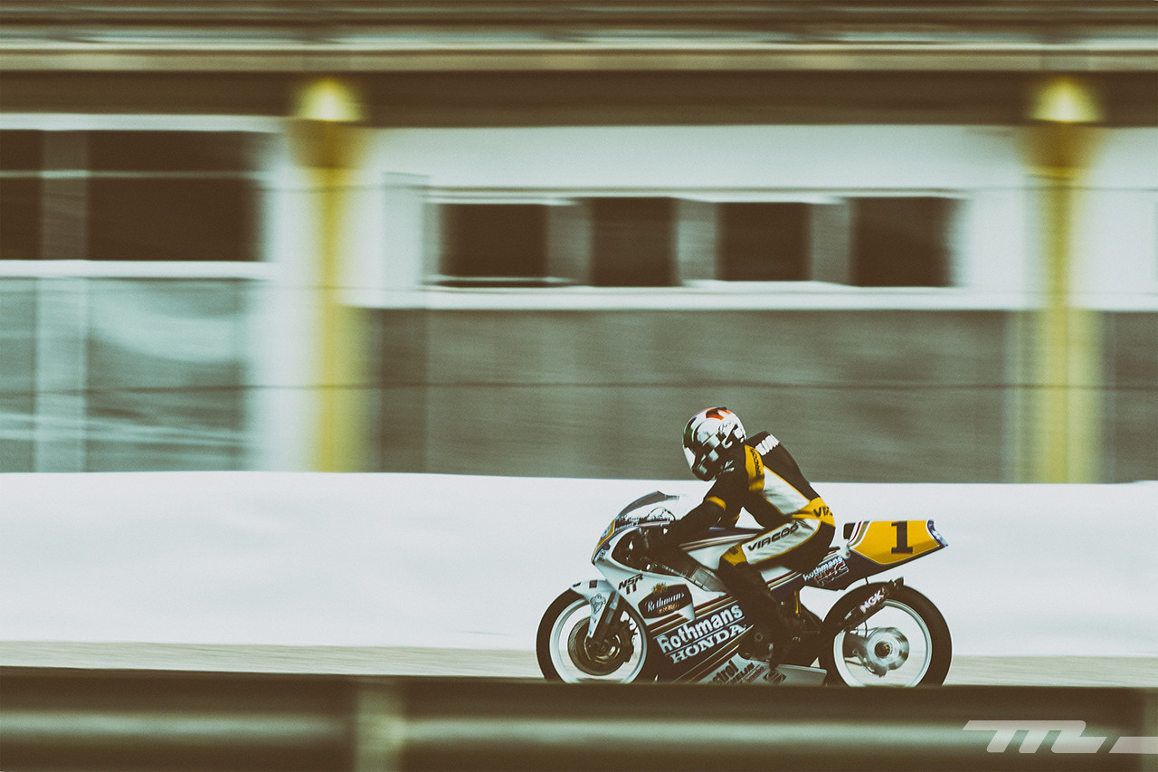 Es un privilegio poder ver rodar otra vez a Lucchinelli sobre una Suzuki de 500 cc con una mecánica parecida a la que le llevó a proclamarse Campeón del Mundo en el año 1981, a “Fast” Freddie sobre su Honda NSR o al venezolano Carlos Lavado sobre su Yamaha de 250.