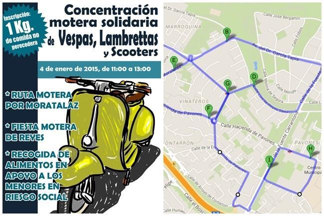 La fecha será el domingo día 4 de enero de 2015 y el lugar el Distrito de Moratalaz (Madrid). El objetivo es ayudar a los niños que sufren riesgo de exclusión social y, por otro lado, participar en políticas activas de seguridad vial para motociclistas. Dos fines que bien valen el precio de la inscripción: cualquier alimento no perecedero. Todo lo que consigan reunir irá destinado al Banco de Alimentos y a Cáritas.