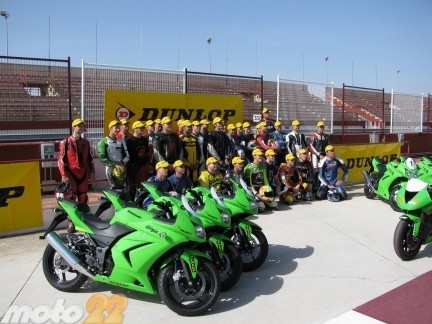 Por el paddock del circuito pululaban los aspirantes a ser pilotos, aunque fuera por un día. Entre los asistentes había de todo, gente muy joven, otros menos jóvenes, algunos acompañados por su chica y otros en grupitos de "colegas" de tandas y entrenamientos cronometrados. Todo un grupo variopinto pero con la misma intención, ser los elegidos. La gente de Dunlop nos atendió a todos por igual, desplegando su simpatía y atenciones liderados por José Luis Sebastián manager de Dunlop Motorsport en España. El programa era sencillo, un briefing en el que se explicó todo el procedimiento, una primera tanda tutelados por el piloto del equipo Kawasaki Palmeto en el Campeonato de España de Velocidad Julián Mazuecos. Esta tanda constaba de seis vueltas para tomar contacto con las motos y con el circuito, en las que tanto Julián como los demás ojeadores se fijarían en las maniobras de los participantes para intentar corregir los posibles vicios de cada uno. Tras esta tanda el plan era comer y luego salir a la pista para competir entre los participantes y el cronómetro. El implacable juez de cualquier actividad en un circuito.