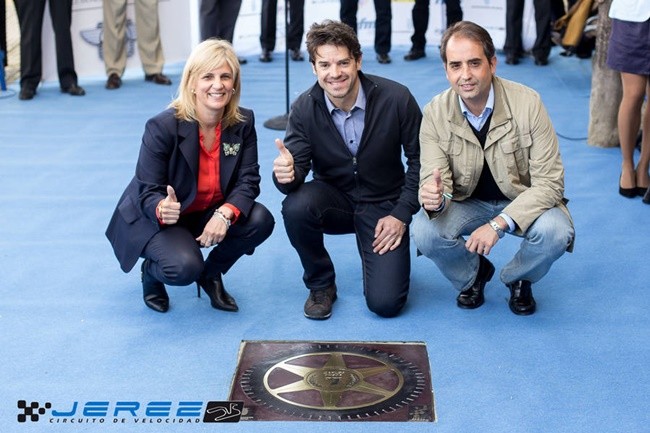 Como es habitual y tras descubrir la rueda-estrella, dejó impresas sus hellas en barro así como su firma en la bota para la Andana de la Fama en la bodega de San Ginés. Entre los varios reconocimientos al piloto de Sant Fruitós de Bages está el haber conseguido, en colaboración con el Ayuntamiento de Jerez y Cirjesa, el haber recuperado el Mundial de Superbikes desde el 2013.