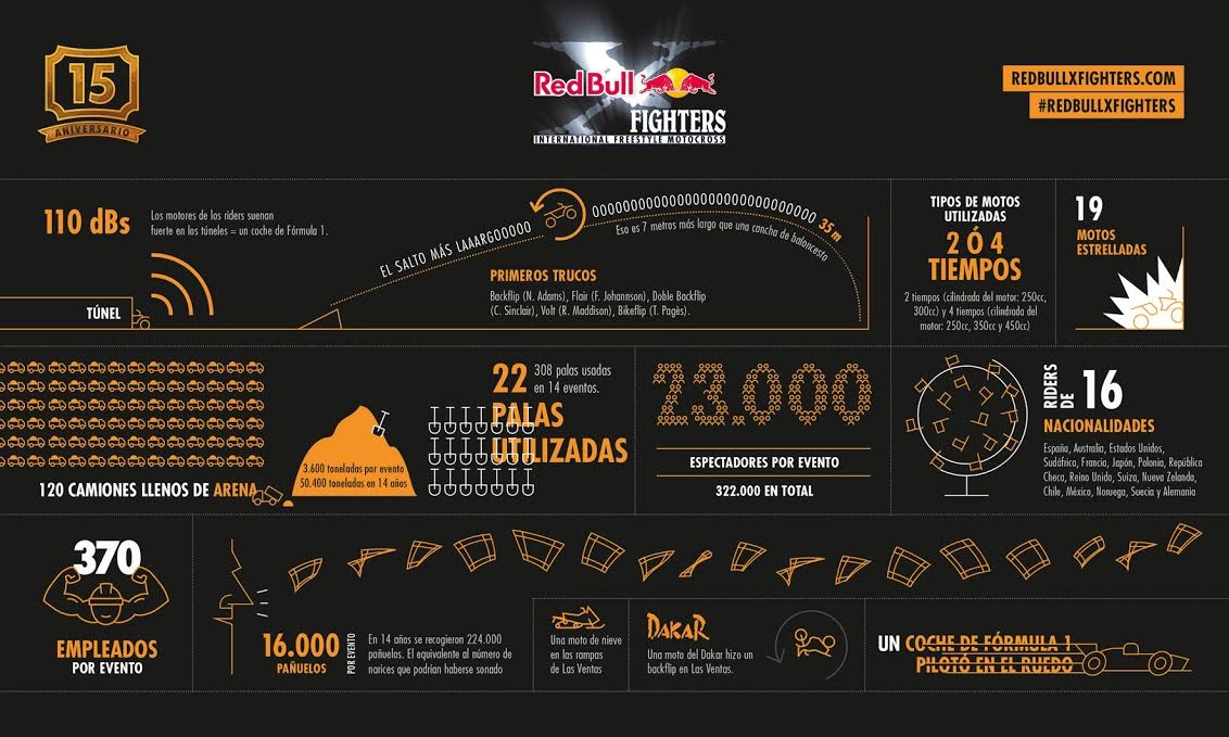 Travis Pastrana, Nate Adams, Robbie Maddison, Dany Torres, Levi Sherwood o Tom Pagès son algunos de los nombres que después de 15 años han hecho la cita en la Plaza de Toros de las Ventas de Madrid la mayor fiesta del motocross freestyle delante de 23.000 espectadores.
