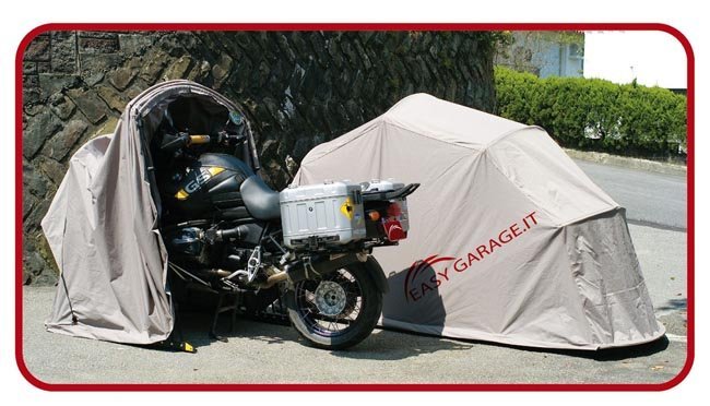 La pena de este Easy Garage que presentaron en el pasado Salón de Milán es que no se puede transportar con facilidad en la propia moto porque si no sería el garaje plegable perfecto para todos, incluso si te pillas una de las versiones más anchas podría ser la idea perfecta para acampar por ahí, durmiendo junto a tu moto. Según dicen en la propia web del fabricante el material de la cobertura es PVC 500D y ofrece protección contra el sol, la lluvia, el viento, el hielo o cualquier inclemencia del tiempo. Además la estructura es de acero lacado, con lo que la durabilidad parece asegurada.