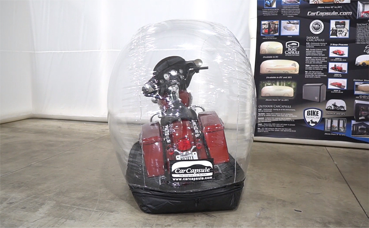 Además, se ha desarrollado pensando en aquellos que quieran mantener su moto impoluta cada vez que van a utilizarla, motivo por el que esta cápsula inflable puede ser el invento que estabas buscando para tu garaje.