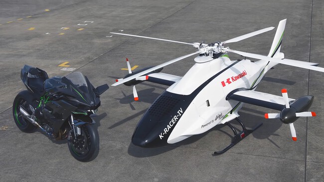 Para poder realizar dicho vuelo, el helicóptero compuesto utiliza el motor de la Kawasaki H2R, un propulsor de cuatro cilindros en línea capaz de desarrollar 310 CV de potencia a 14.000 rpm y 165 Nm de par con el que, además de navegar a altas velocidades, logra elevar grandes cantidades de peso. Como decíamos en la entradilla, este prototipo ha sido desarrollado por la división aeroespacial de la empresa junto a la división específica de motos, recientemente separada de Kawasaki Heavy Industries.