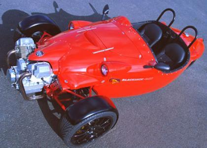 Después de un rato dando vueltas a la cabeza he llegado a la conclusión de que no se cómo definir este vehículo. ¿Un coche con motor de moto? ¿Una moto con volante? El experimento en cuestión se llama Blackjack Zero y se trata de un vehículo de tres ruedas situadas de forma inversa a la habitual, es decir, dos en el eje delantero y una en el trasero. Lo curioso del tema es que se ha utilizado un motor Moto Guzzi V-Twin para darle vida.