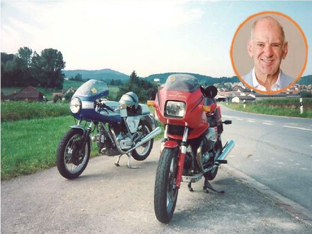 Pero antes, su garaje. Su primera moto fue una Morini 350 Sport... Que no llegó a pilotar mucho. Su padre, que había sido mensajero motorista en el ejército, compartía con él ese entusiasmo por las dos ruedas. Fue tal su afición que decidió regalarle una moto para su cumpleaños y Navidad combinados, una tradición familiar que le permitió cumplir su deseo de tener una Morini 350 Sport.