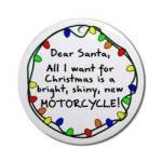 Pues si, ya es momento de felicitar a tus colegas moteros las navidades, así que aquí tenéis unas cuantas imágenes de Santa motero. La foto de aquí a la derecha es de un adorno para el árbol de navidad que se puede comprar en Cafepress, no garantizan que funcione... ("Dear Santa Motorcycle Christmas Ornament")