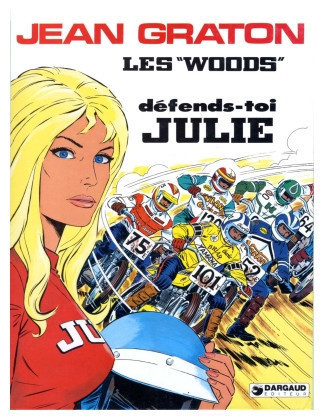 No hay muchos comics de moteros en general, pero de moteras en particular creo que sólo este. Julie Wood es una motera profesional creada por Jean Graton en 1976. El autor publicó ocho aventuras de Julie y después la incluyó como personaje de su más famosa serie "Michel Vaillant", cuyo protagonista es un corredor de formula 1.