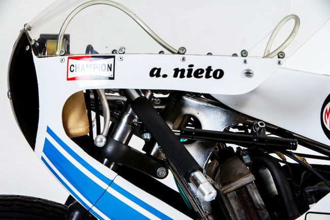 Lo hizo con esta moto de 125 cc con 30 CV de potencia, la misma con la que Parlotti estuvo luchando por el mundial en 1972, quien tuvo la mala fortuna de fallecer ese mismo año mientras disputaba el TT de la Isla de Man. La moto que se subastará en abril fue totalmente restaurada en 2006, una montura de la que Nieto se bajaría a finales de 1973 para volver a pilotar en el equipo Derbi.