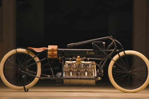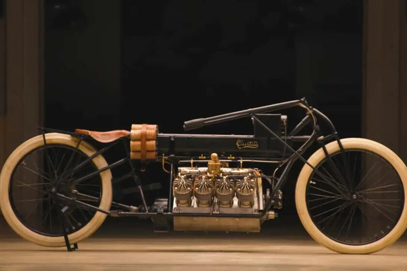 La Curtiss V8 nació en ese contexto. No como una moto en el sentido moderno, sino como un artefacto con dos ruedas y una obsesión muy clara: ser el más rápido del mundo. Glenn Curtiss, pionero de la aviación y de la mecánica cuando ambas disciplinas todavía se estaban escribiendo sobre la marcha, decidió que un enorme V8 aeronáutico de cuatro litros era la herramienta adecuada para lograrlo. Un motor que rondaba los 40 CV, una cifra que hoy no impresiona a nadie, pero que en su época era dinamita pura.