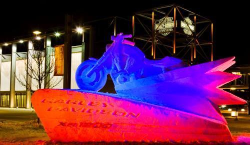 Tom Queoff trabajó sólo con herramientas manuales durante más de tres días a temperaturas bajo cero para esculpir la gigantesca escultura de la XR 1200, situada en el exterior del nuevo Museo Harley-Davidson en Milwaukee, EE.UU.