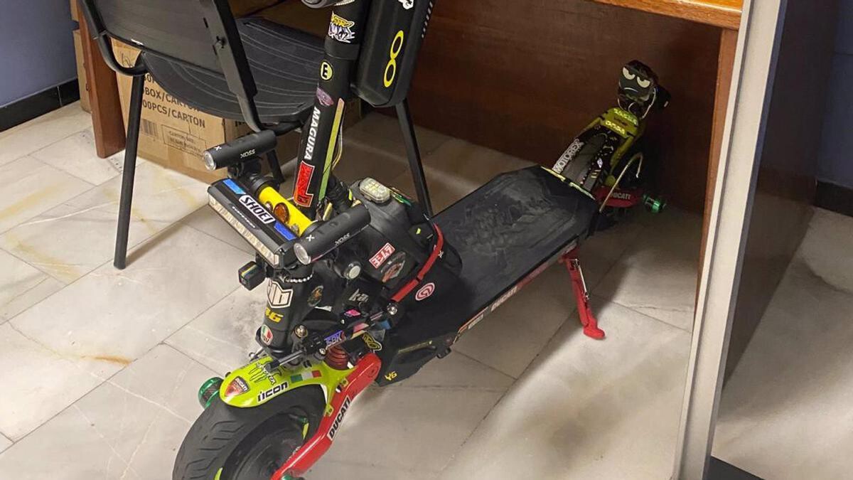 Algunos medios locales ya han bautizado a este temerario suceso como "la patineta-bólido", y no es para menos viendo lo equipado que estaba el patinete. No faltan pegatinas de Ducati, hasta topes en las ruedas, y todo tipo de llamativos artilugios.