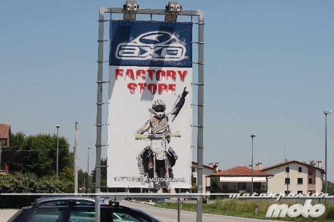 Nada más acercarnos a las proximidades de la fábrica que AXO Sport tiene en la provincia de Treviso en Italia unos grandes carteles publicitarios anunciando su factory store te ponen sobre aviso de la cercanía de las instalaciones. Tras cruzar la puerta de entrada una original y divertida recepción da la bienvenida al visitante.