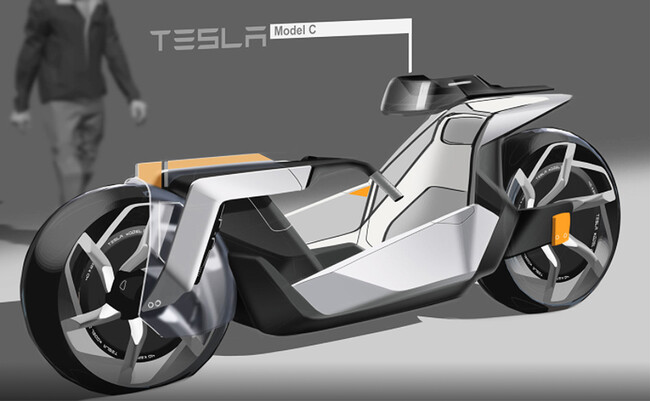 Lo que han hecho en este caso ha sido plasmar lo que para ellos sería la moto eléctrica que Elon Musk querría tener en su catálogo y a la denominan Tesla Model C, con unas líneas futuristas en las que se aprecia una mezcla de aires de moto y coche.