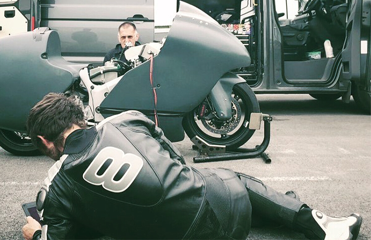 La marca que pretende alcanzar es la de 300 mph, es decir, casi 483 km/h, una velocidad de escándalo que asegura que puede lograr con la preparación de la Suzuki Hayabusa turbo de 830 CV que pilota (que poco tiene que ver con la 'Busa' de serie) y en la que ha trabajado muy duro junto a Jarrod 'Jack' Frost.
