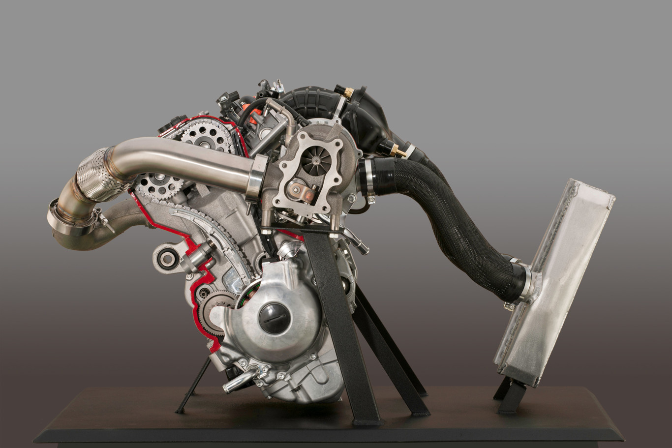 Pero no sólo es un motor potente, sino que Yamaha ha trabajado mucho en que la entrega de potencia sea directa, sin el típico retardo de los turbo. De hecho todo el motor ha sido diseñado desde cero para funcionar asociado a un turbo, no es una adaptación. Desde la admisión hasta el escape todo está diseñado para la Sidewinder.