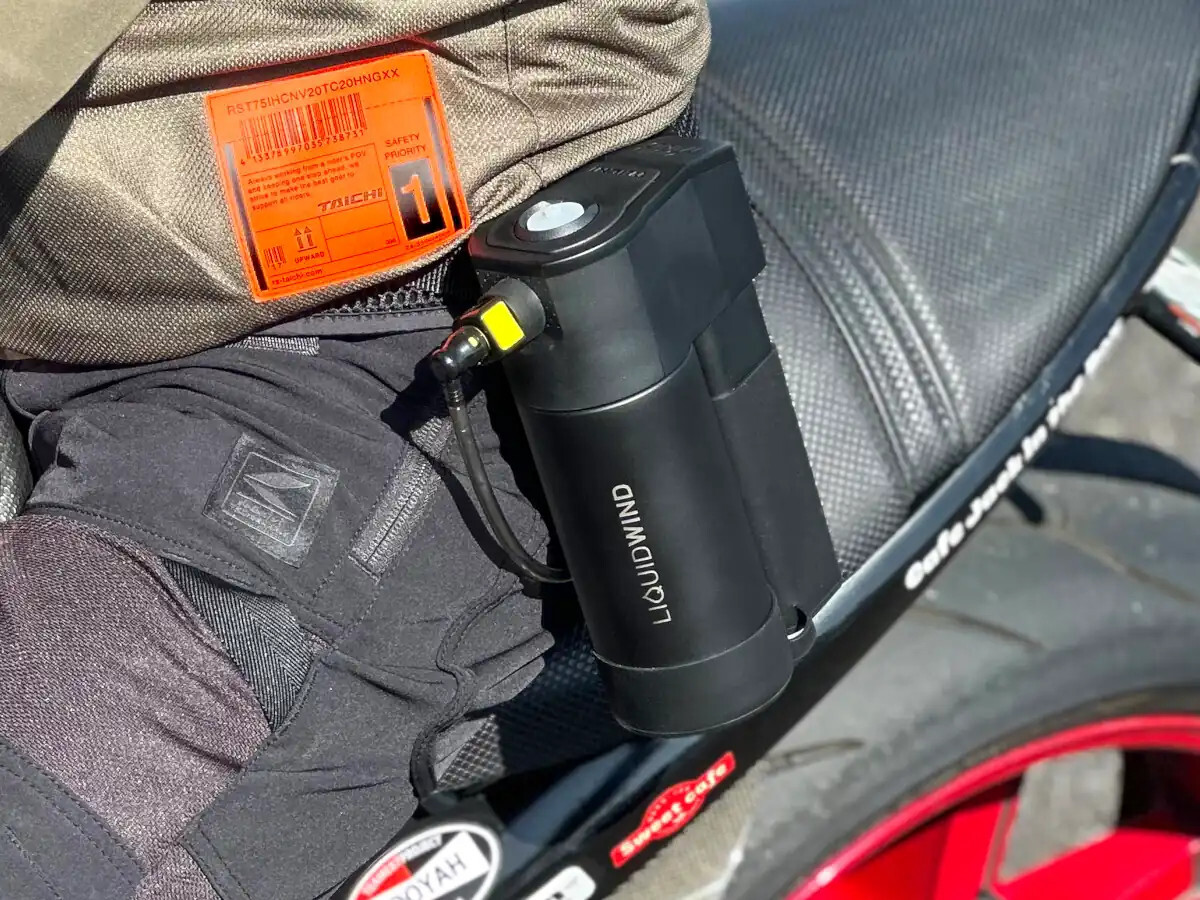 El año pasado conocimos de primera mano la bolsa con depósito y turboventilador que refrescaba al motorista. Quizá era demasiado aparatosa, por lo que otra empresa ha ideado una versión aún más curiosa, el Liquid Wind.