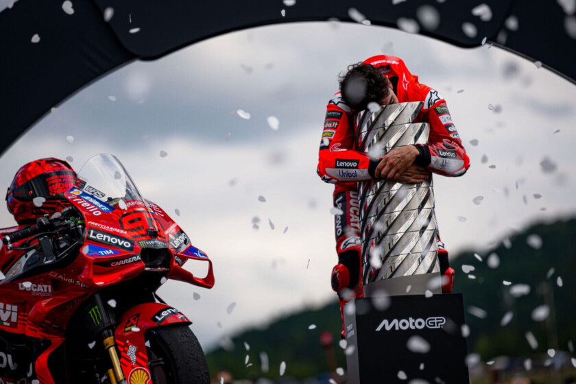 Lo cierto es que todos hablaban de igualar a Valentino en número de títulos. Eso ya está hecho. Ahora la cuestión es hasta cuándo será deportivamente hábil Ducati, hasta cuándo seguirá dominando. El cambio de reglamento a las 850 cc en 2027, en unos meses, podría ser un punto de inflexión donde la hegemonía de Borgo Panigale se acabe (y parece que Aprilia ya acecha). Entonces Márquez tendrá que decidir entre aguantar el chaparrón, volver a Honda, a casa, para una retirada cómoda y darse una última intentona, o bien retirarse.