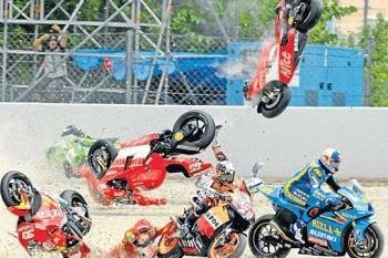 Haciendo cálculos observamos que hay un promedio de unas 38 caídas por cada GP, unas 12 por cada categoría (125cc, 250cc y MotoGP), y si seguimos minimizando los datos, teniendo en cuenta que son tres días de competición (dos entrenamientos y carrera), la cosa quedaría en unas 4 caídas por cada GP, categoría y día. Quedándonos con este último dato, no parece algo tan escalofriante.